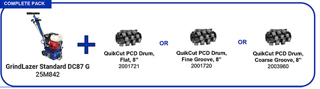 Využijte skvělou příležitost u právě probíhající akce na velkou slevu při objednávce jedné ze tří variant kombinace fréz Graco GrindLazer a frézovacího válce QUIKCUT PCD.