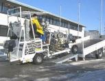 Jednonápravový přívěsný vozík určený pro přepravu středně velkých silničních značkovacích strojů, např. stroje Hofmann H18.